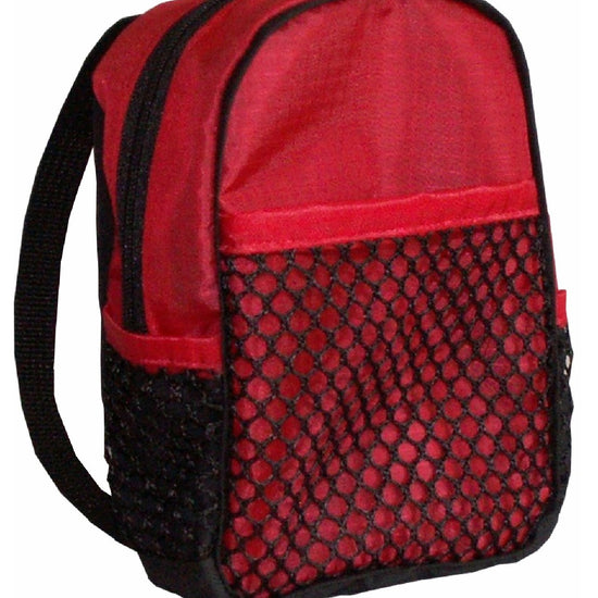 Perfect for doll adventures! This vibrant red and black backpack is sized just right for American Girl dolls. Featuring a functional zipper closure and three convenient side pockets, it's ideal for carrying tiny treasures, accessories, or supplies on playtime journeys. A practical and stylish addition to any doll's wardrobe.