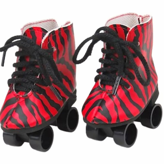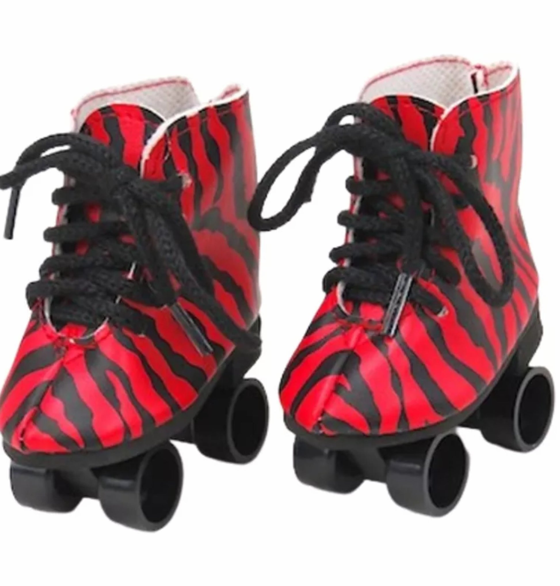 Red Zebra Roller Skates add a wild twist to doll playtime!