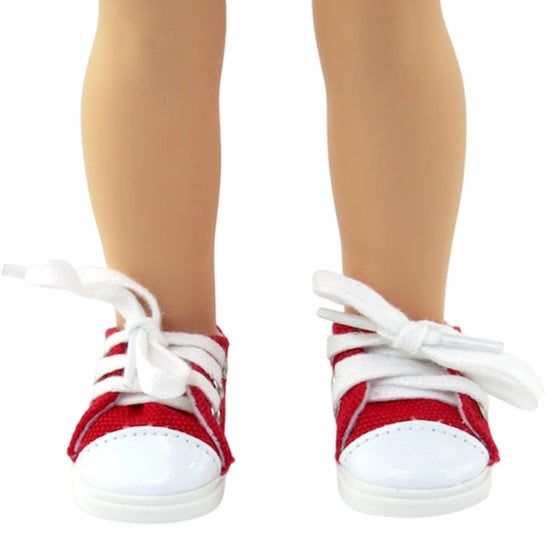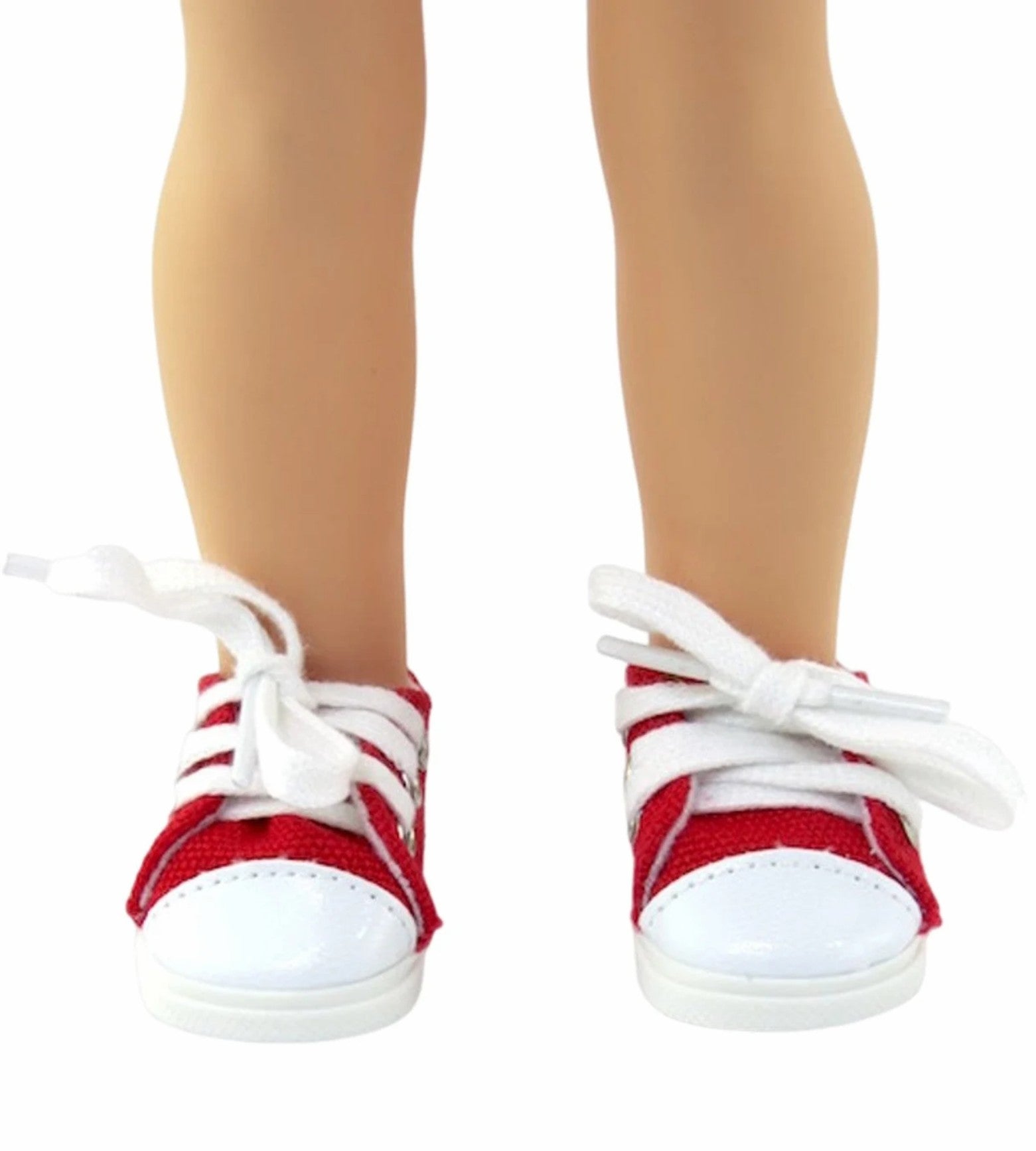Step up your 14.5" WellieWishers doll’s style with these red canvas sneakers. Featuring classic white laces and measuring about 2 1/8" by 1", they’re a perfect fit for everyday fun and adventure. Easy to mix and match for endless playful looks!