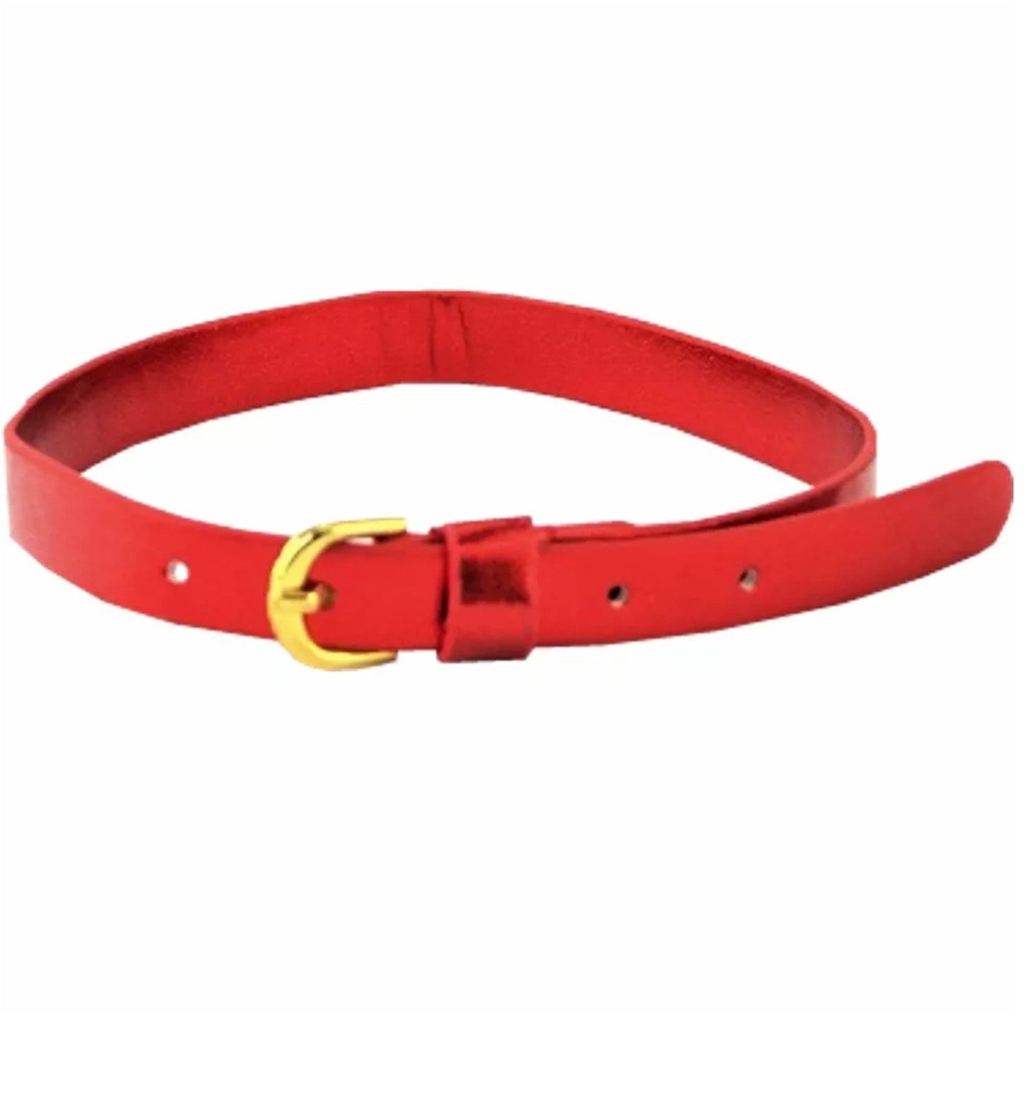 Red metallic belt measures about 1/2" x 15".
