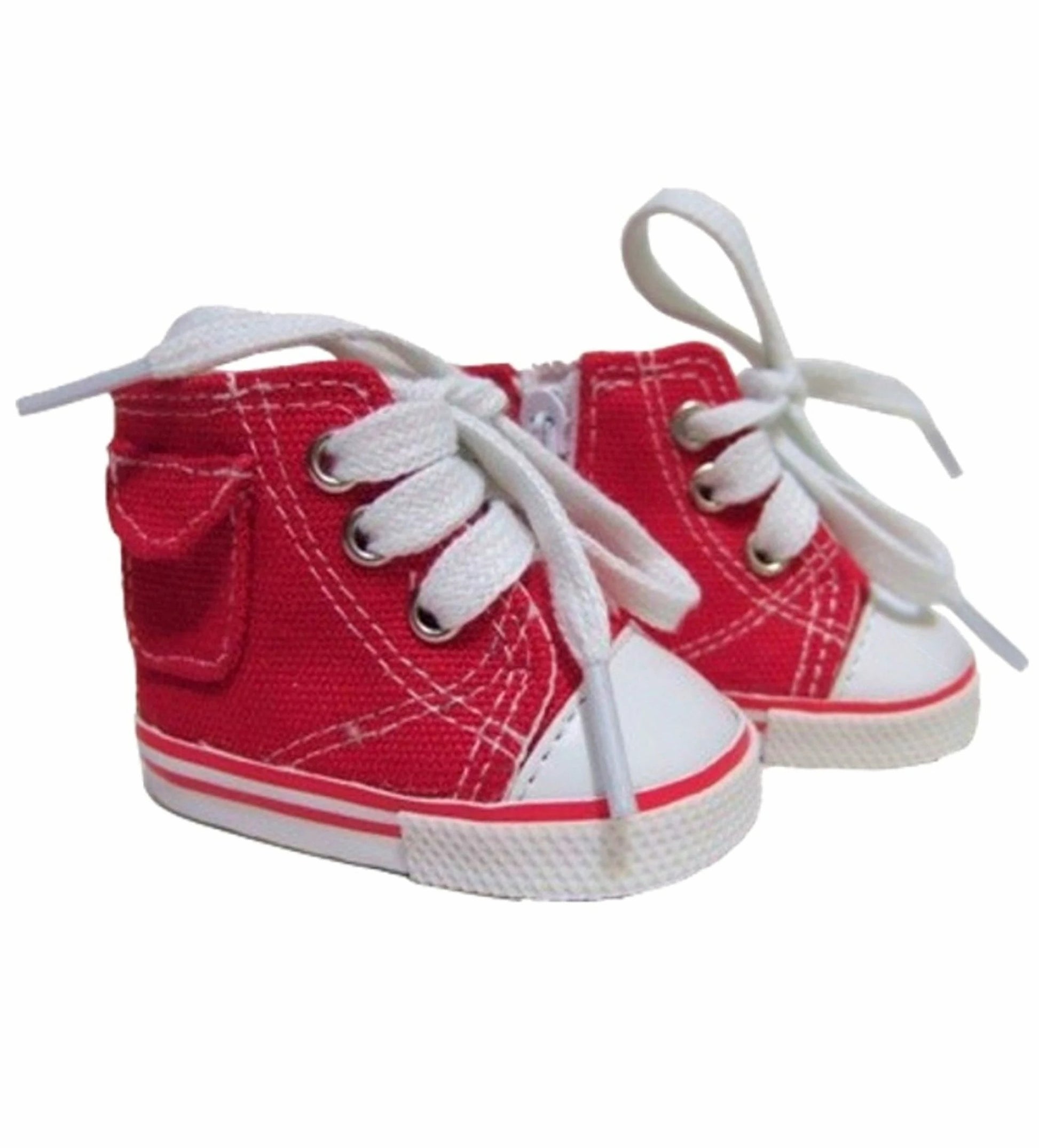 Red canvas mid top sneakers with pockets. Shoes close with zippers.