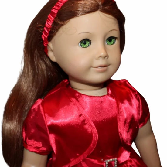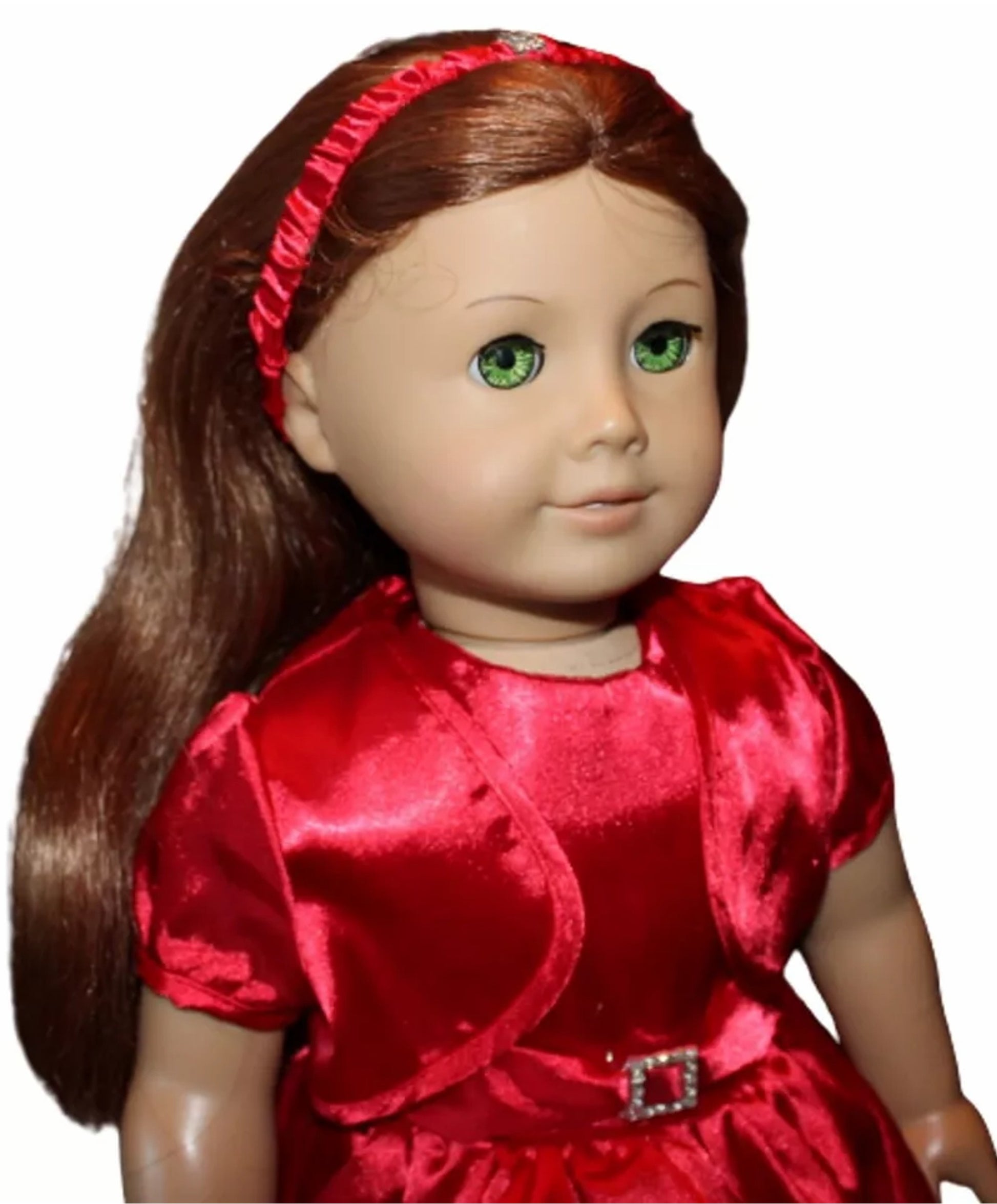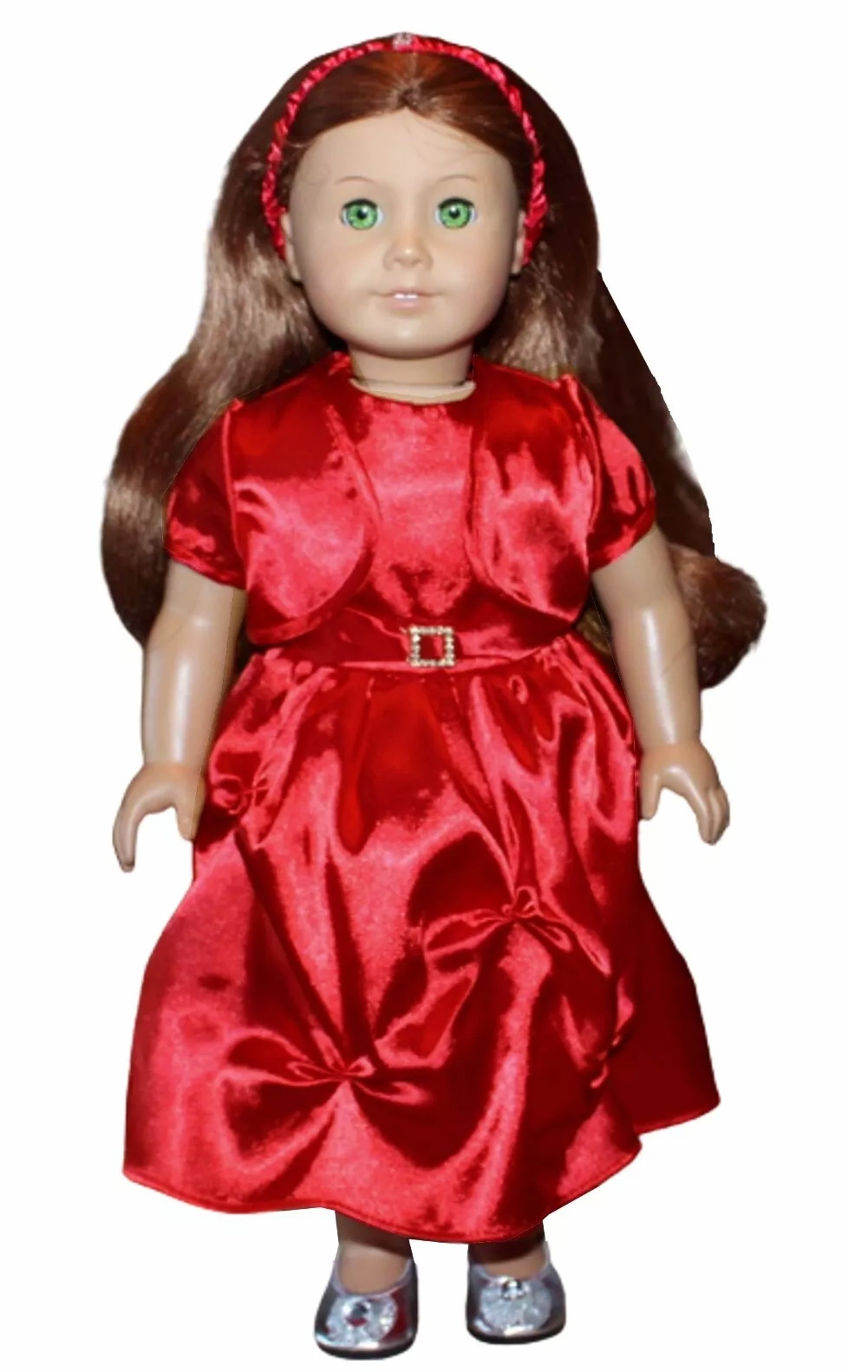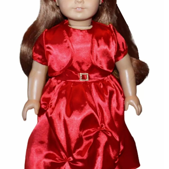 Red sleeveless dress with jacket includes a matching headband with rhinestone accents.