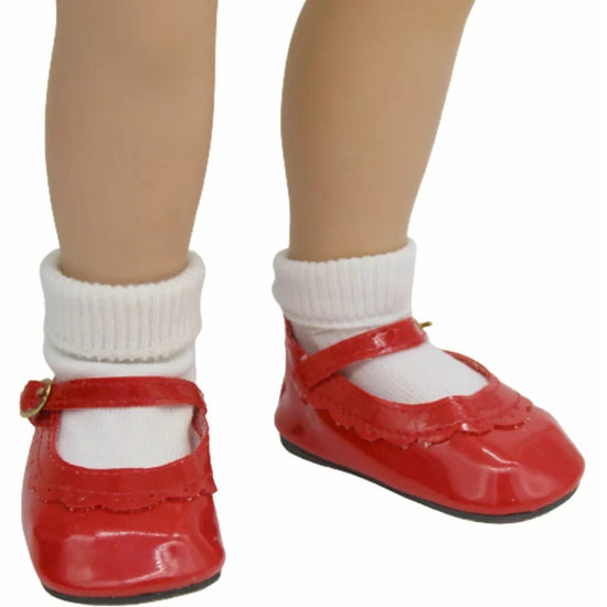 These bright red scalloped Mary Janes add a dash of charm to your My Twinn dolls' wardrobe. Featuring a sweet buckle closure, they make every step playful and stylish. Perfect for doll adventures or dress-up fun!