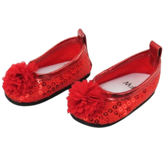 Get ready to sparkle! These dazzling red sequin flats are designed to make your 18-inch American Girl doll shine at every occasion. Topped with a charming red flower detail, they're the perfect blend of glam and whimsy. The slip-on style makes dressing up quick and easy, while the eye-catching sequins add that extra dose of pizzazz to any outfit. From fancy parties to everyday adventures, these flats are sure to steal the spotlight!