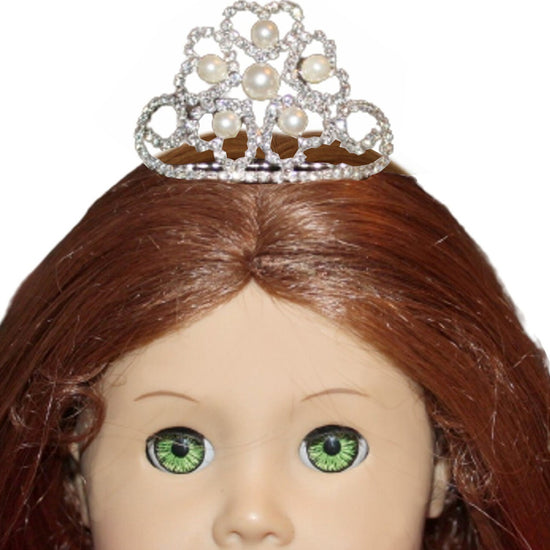 Crown your doll in glamour with this sparkling tiara featuring glittering rhinestones and lustrous faux pearls. Measuring 2 1/4" across and 1 1/2" high, it's sized perfectly for 18" American Girl dolls. Whether she's attending a royal ball or just feeling fancy, this dazzling accessory transforms any outfit into something truly magical and fit for royalty.