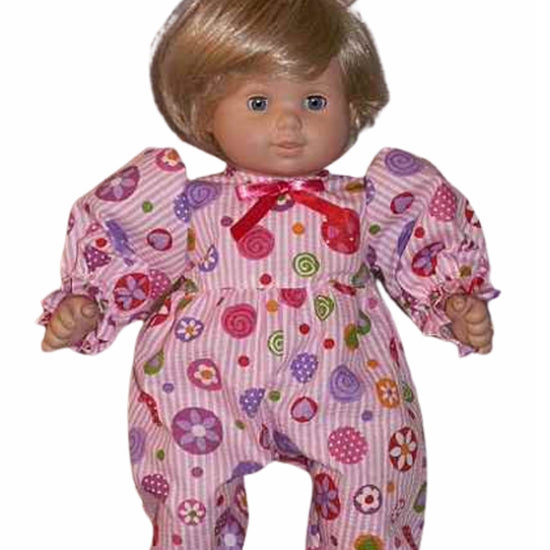 Give your Bitty Baby doll a cozy, stylish look with this versatile romper! Choose between short or long sleeves to match any season, and enjoy the charming gathered pants that taper at the hem for a polished finish. The convenient back Velcro closure makes dressing your 15–16" doll a breeze. Handmade with attention to detail, this romper is a delightful addition to any doll's closet.
