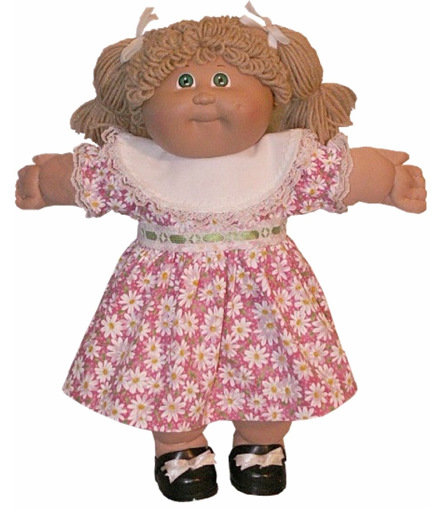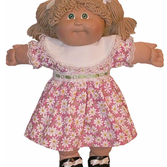 Dress your 16" Cabbage Patch Kids doll in timeless style with this charming round collar dress. Featuring a delicate lace-trimmed collar in white or ivory (depending on your fabric selection) and a coordinating waist trim, this dress brings vintage-inspired elegance to playtime. Choose between short or long sleeves to match the season, and enjoy the convenience of a back Velcro closure for easy dressing and undressing. Perfect for everyday wear or special doll occasions.