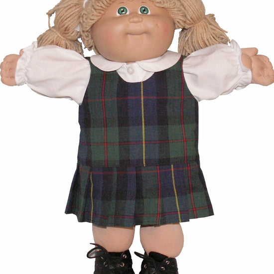This charming school jumper is perfect for your 16" Cabbage Patch Kid doll! Featuring a classic pleated skirt with a stylish inset belt at the waist, it closes securely in back with convenient Velcro fastening. Choose from our available fabrics, or send us an outgrown uniform from your child's own school—we'll recreate it as a matching doll version! Pair it with our coordinating blouse (sold separately) for the complete uniform look. A delightful way to make playtime feel extra special!