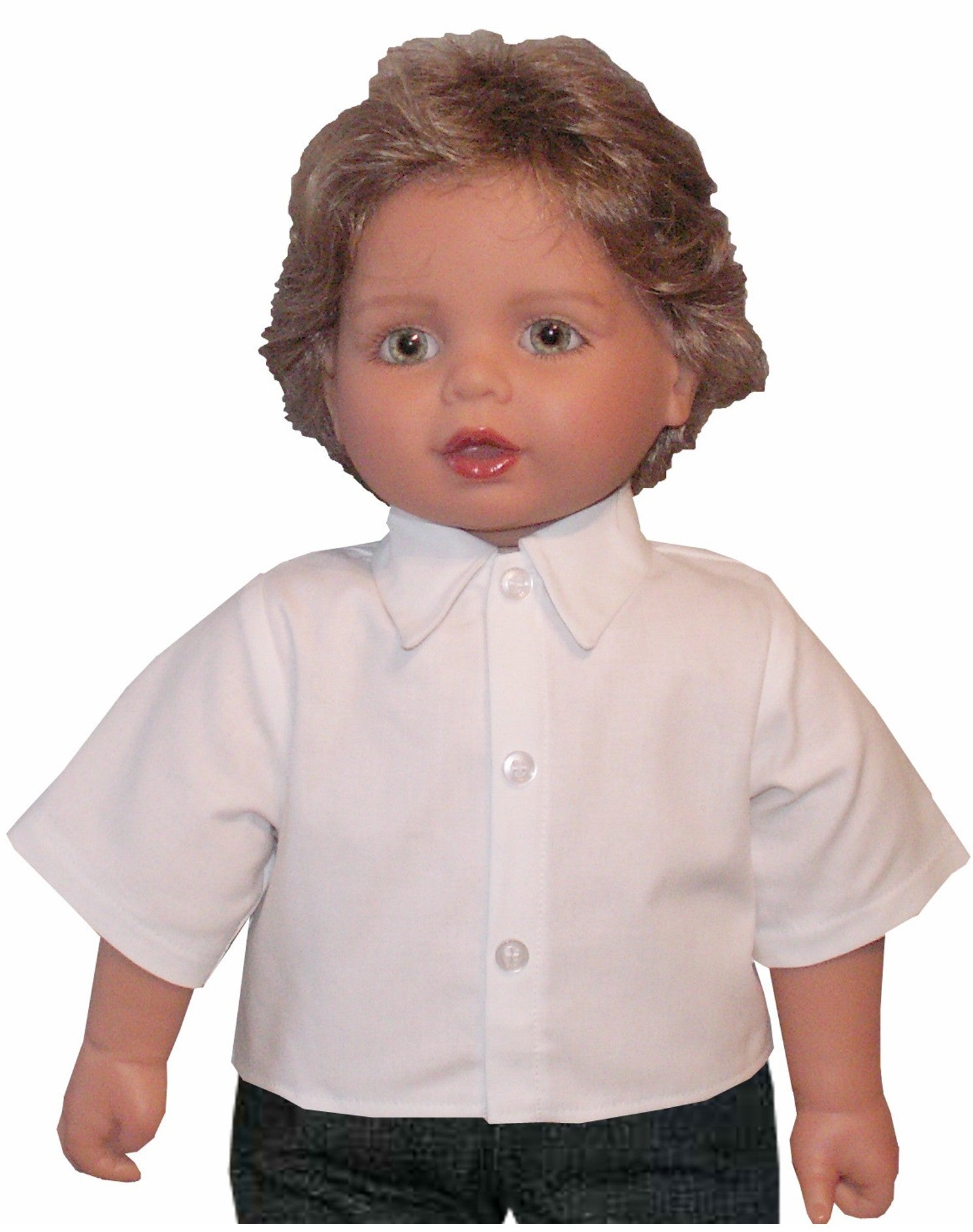 Dress your 20" My Twinn toddler doll boy in style with this charming shirt featuring a classic collar and decorative buttons. Choose between short or long sleeves to match any season or outfit. The convenient Velcro closure makes dressing playtime quick and easy, so your little one can focus on the fun. Perfect for creating endless mix-and-match looks in your doll's wardrobe!