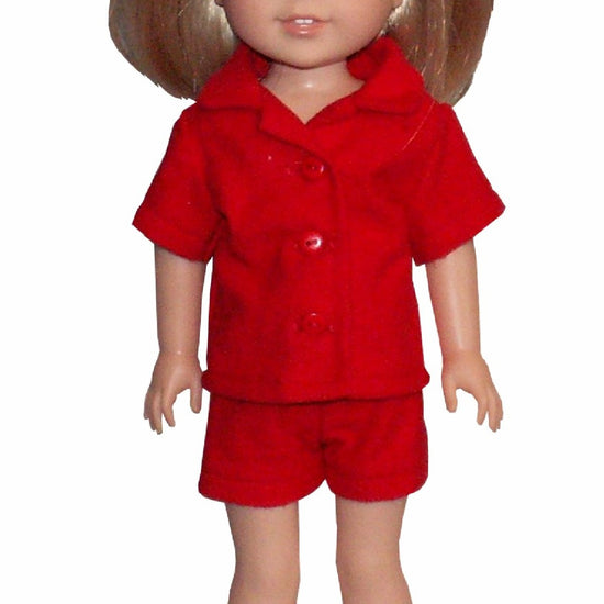 Sweet dreams start here! These adorable flannel pajamas fit 14" WellieWishers dolls perfectly. Featuring a classic collar and button-front top with short sleeves, paired with comfy shorts that have an elastic waist for easy on-and-off. Ideal for cozy bedtime scenes and slumber party play adventures!