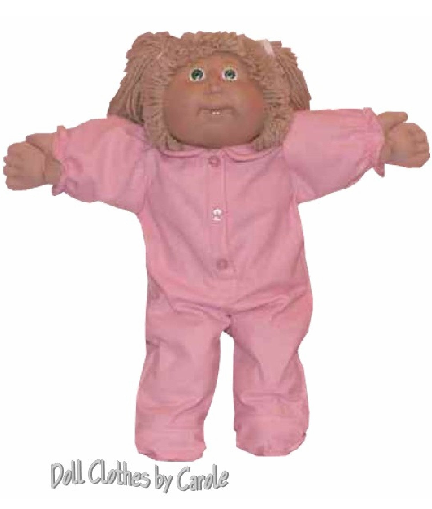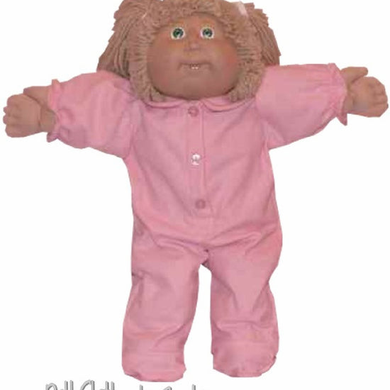 Cozy flannel pajamas designed for 16" Cabbage Patch Kids dolls! This one-piece sleeper features soft, brushed fabric with long sleeves and charming decorative buttons down the front. Choose between two styles: the rounded collar with fuller sleeves for a sweet girls' look, or the squared collar for a classic boys' style. Perfect for tucking your doll in for bedtime adventures.