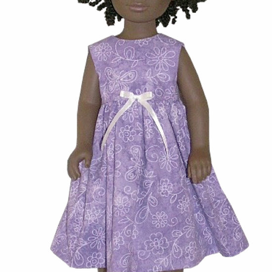 Sleeveless dress designed for 21" Karito Kids dolls features a fully lined bodice paired with a flowing gathered skirt for elegant movement. The back closure uses Velcro for easy dressing and undressing. Perfect for expanding your doll's wardrobe with a versatile, timeless piece.