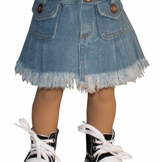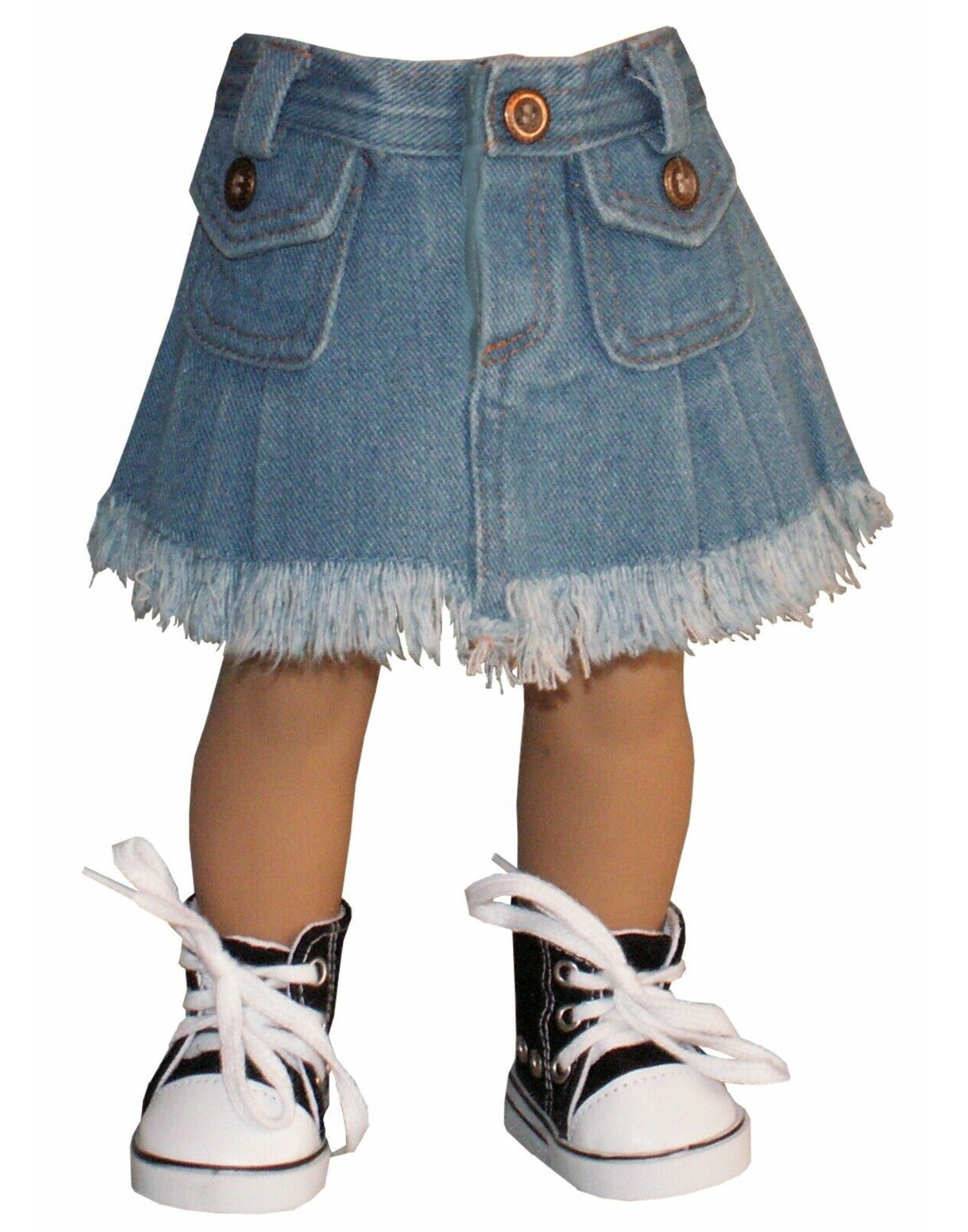 This playful frayed denim skirt adds a cool, casual vibe to any doll’s wardrobe. It features a front Velcro closure for easy dressing and a perfectly imperfect edge that brings extra character to every outfit.
