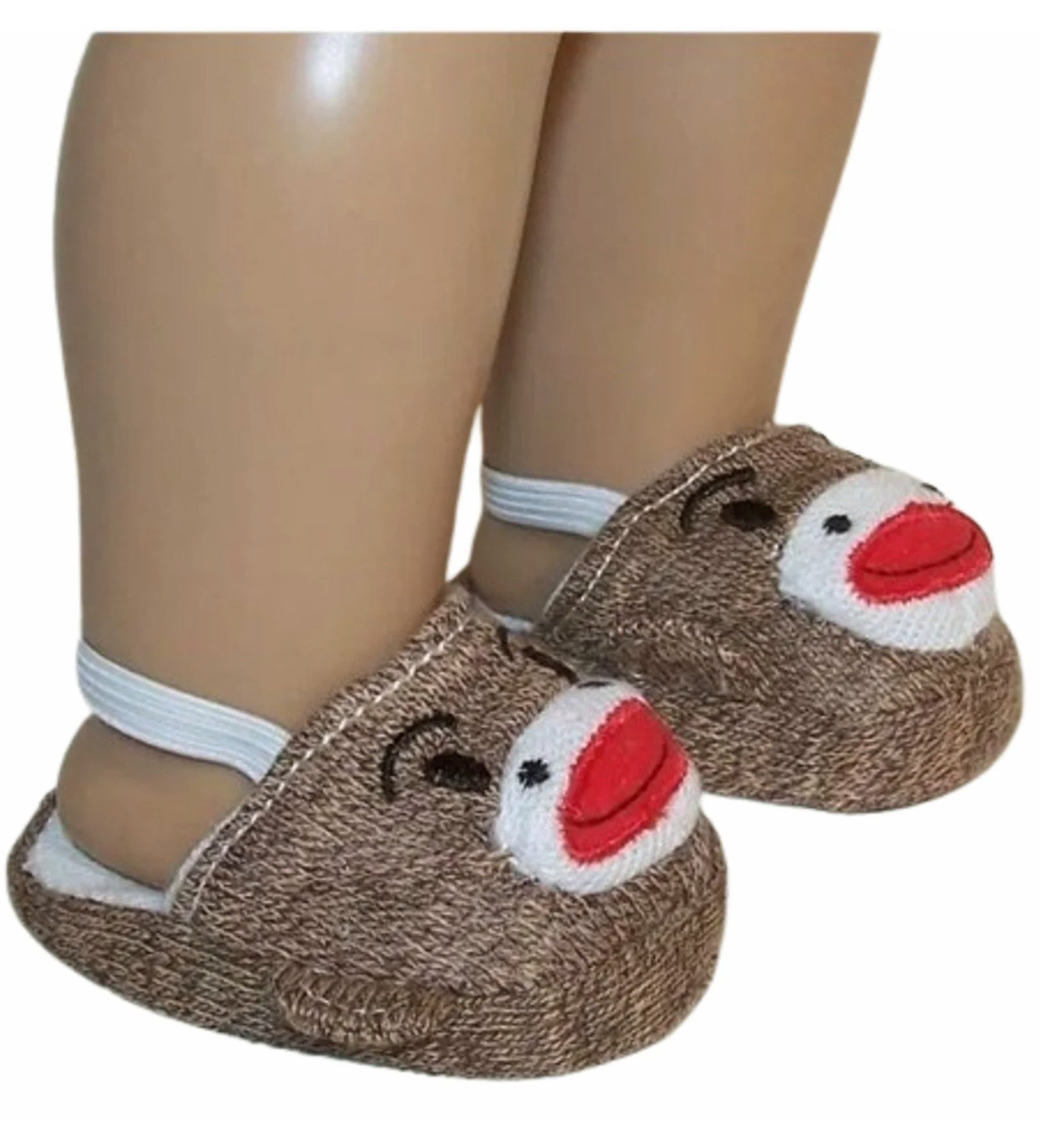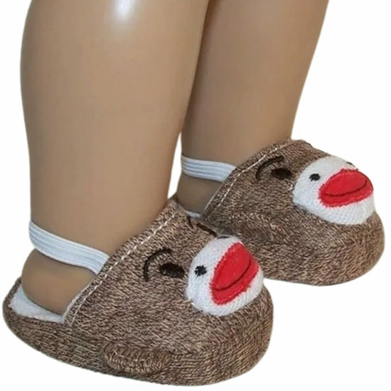 Brown sock monkey slippers.