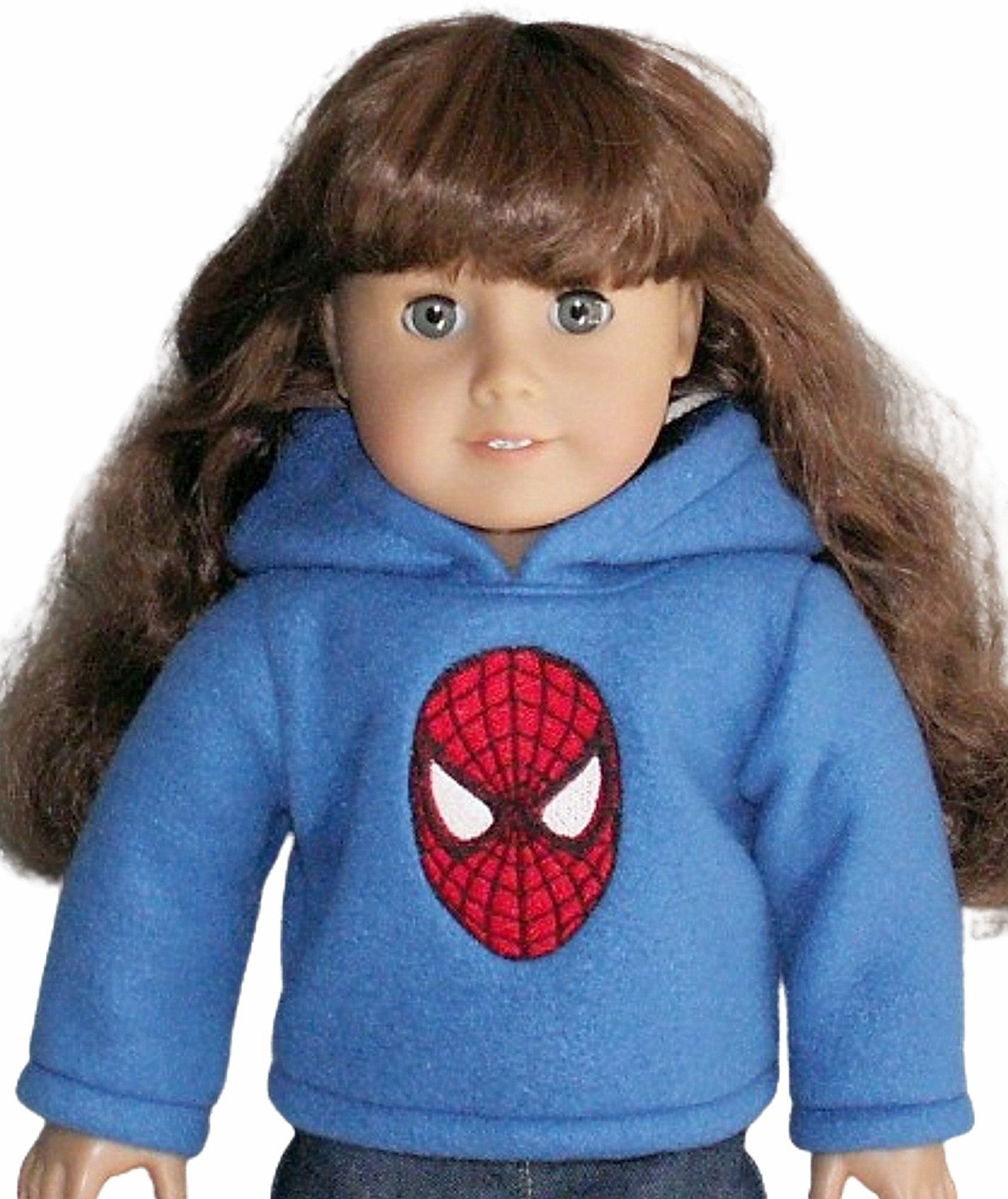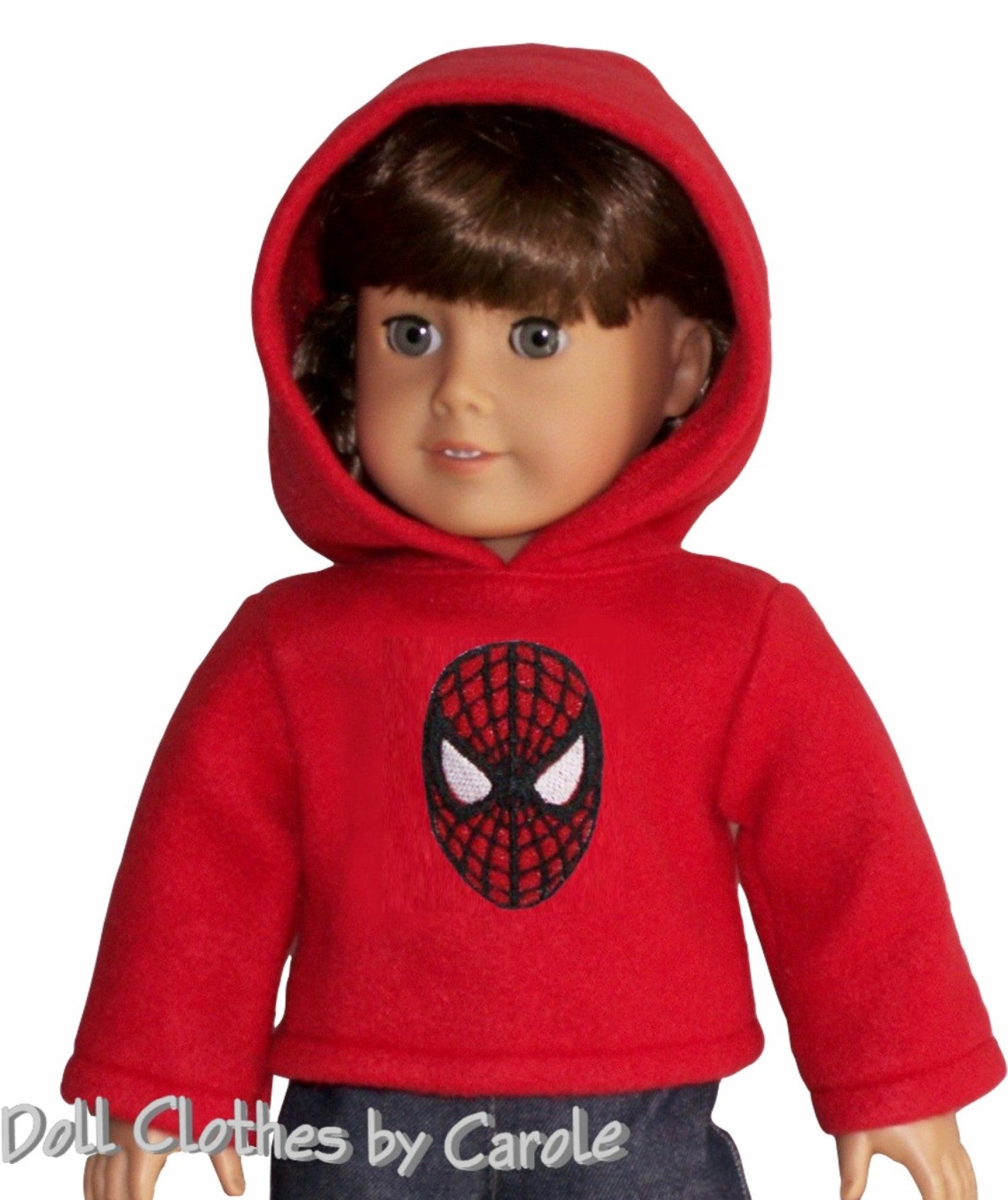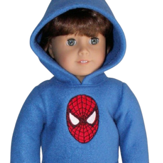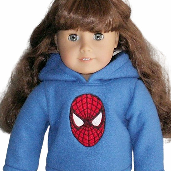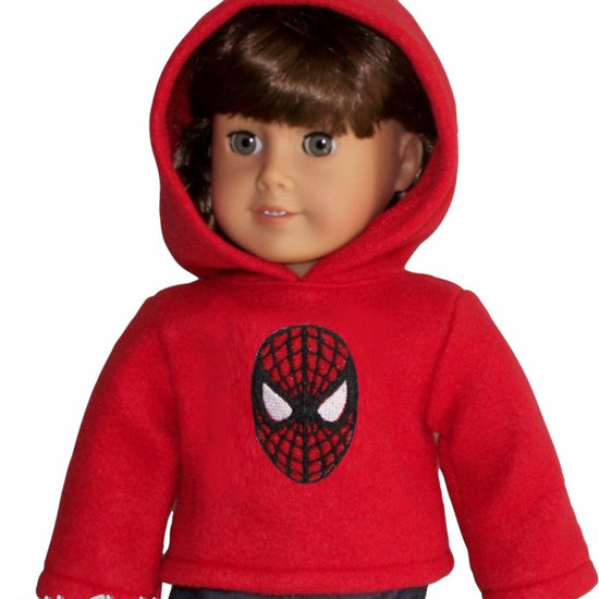 Your doll is ready to web-sling into action with this awesome Spiderman hoodie! Featuring bold Spiderman embroidery, this comfortable sweatshirt brings superhero excitement to playtime. The innovative back-opening design makes dressing your doll super simple—no struggling with sleeves! Perfect for scaling buildings or saving the day between adventures, this practical hoodie combines cozy comfort with web-slinging style. Sized for American Girl dolls, this is a must-have for any Spidey fan!
