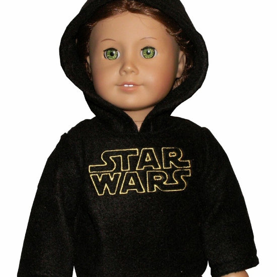 Dress your 18" doll in galactic style with this black Star Wars hoodie! Featuring iconic embroidery that any fan will love, this cozy layer brings adventure to doll playtime. The genius back-opening design makes dressing your doll a breeze—no wrestling with tiny arms required. Perfect for collectors and kids who want their dolls ready for any mission across the galaxy.