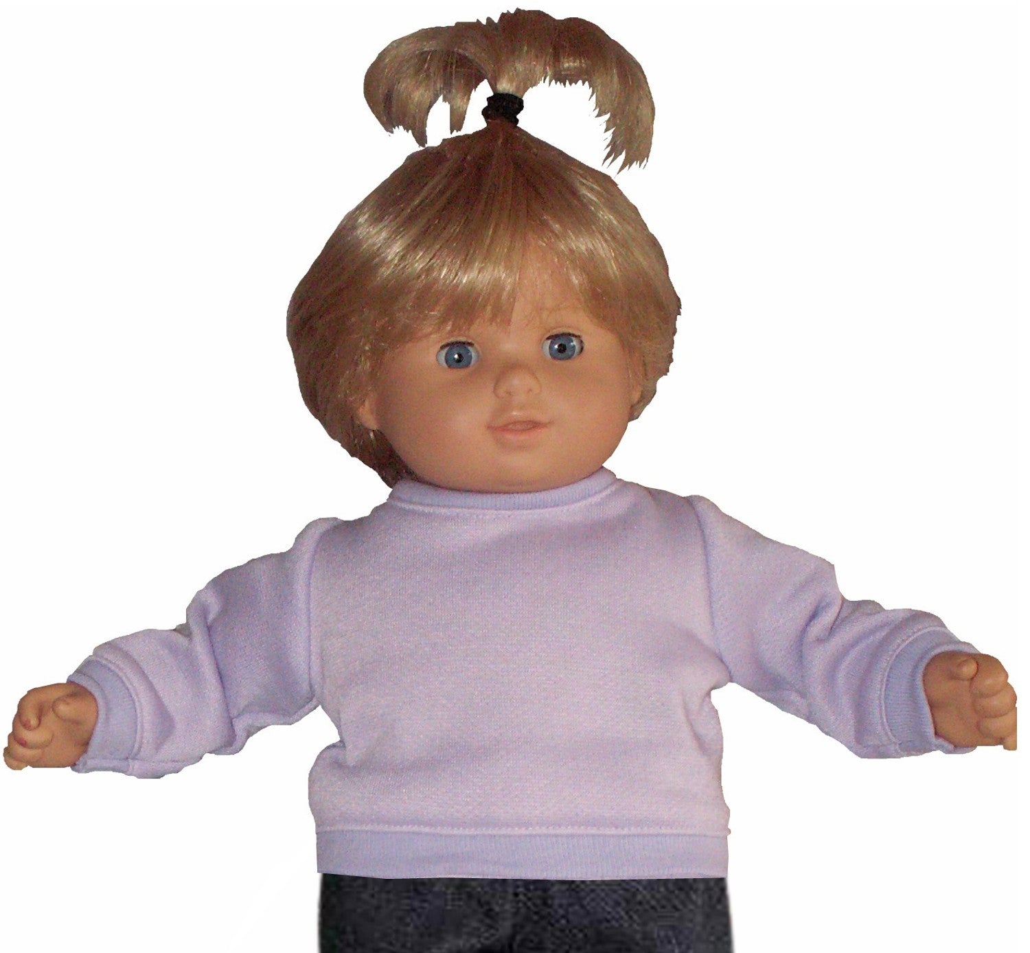 Cozy sweatshirt designed for 15–16" Bitty Baby dolls, featuring ribbed trim at the neck, sleeves, and waist for a polished fit. The full back opening makes dressing your doll a breeze—no wrestling required! Perfect for keeping your little one warm and stylish.