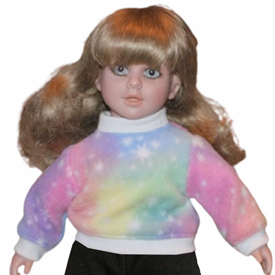 Cozy sweatshirt designed for 14" My Twinn Cuddly dolls, featuring ribbed trim at the neck, sleeves, and waist for a polished fit. The full back opening makes dressing your doll a breeze—no wrestling required! Perfect for keeping your little one warm and stylish.