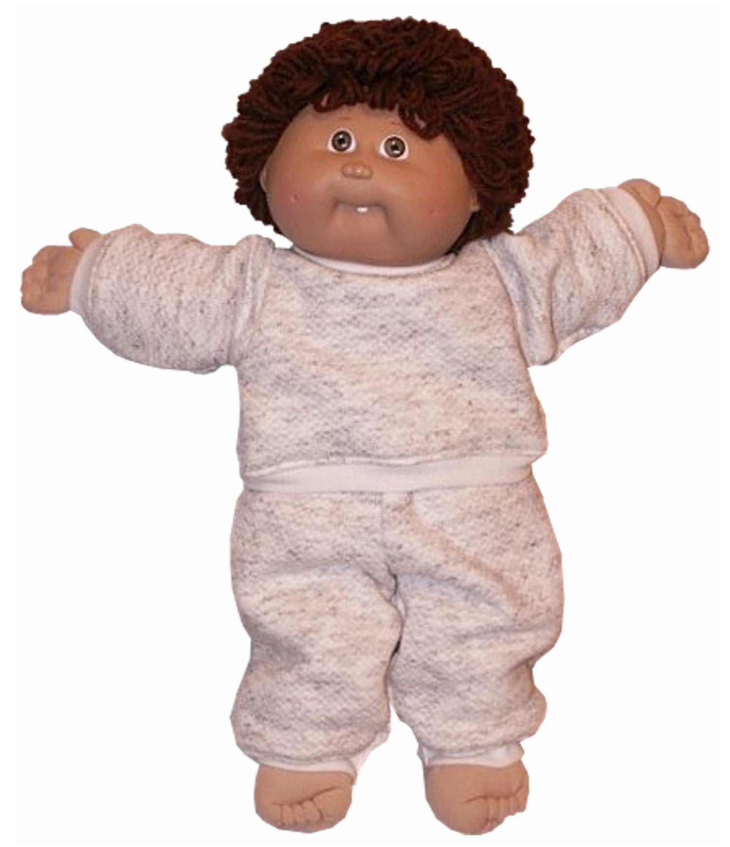 Dress your 16" Classic Cabbage Patch Kid doll in comfort with this Sweatshirt & Pants set! The cozy sweatshirt features ribbed trim at the neck, sleeves, and waist, plus a full back opening that makes dressing a breeze. Pair it with the matching pants featuring an elastic waist for a relaxed, put-together look. Perfect for casual playtime or everyday wear.