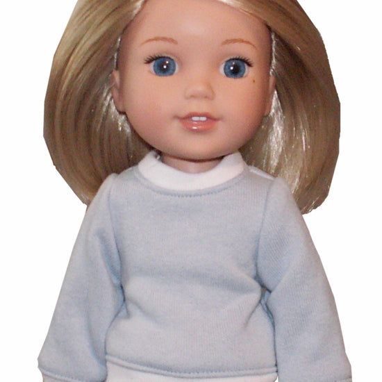 Dress your 14" WellieWishers doll in cozy comfort with this charming sweatshirt! Featuring classic ribbed detailing at the neck, sleeves, and waist for a polished fit, this piece opens fully down the back—making outfit changes a breeze. Perfect for creating endless styling possibilities with your favorite doll. Soft, practical, and oh-so-cute!