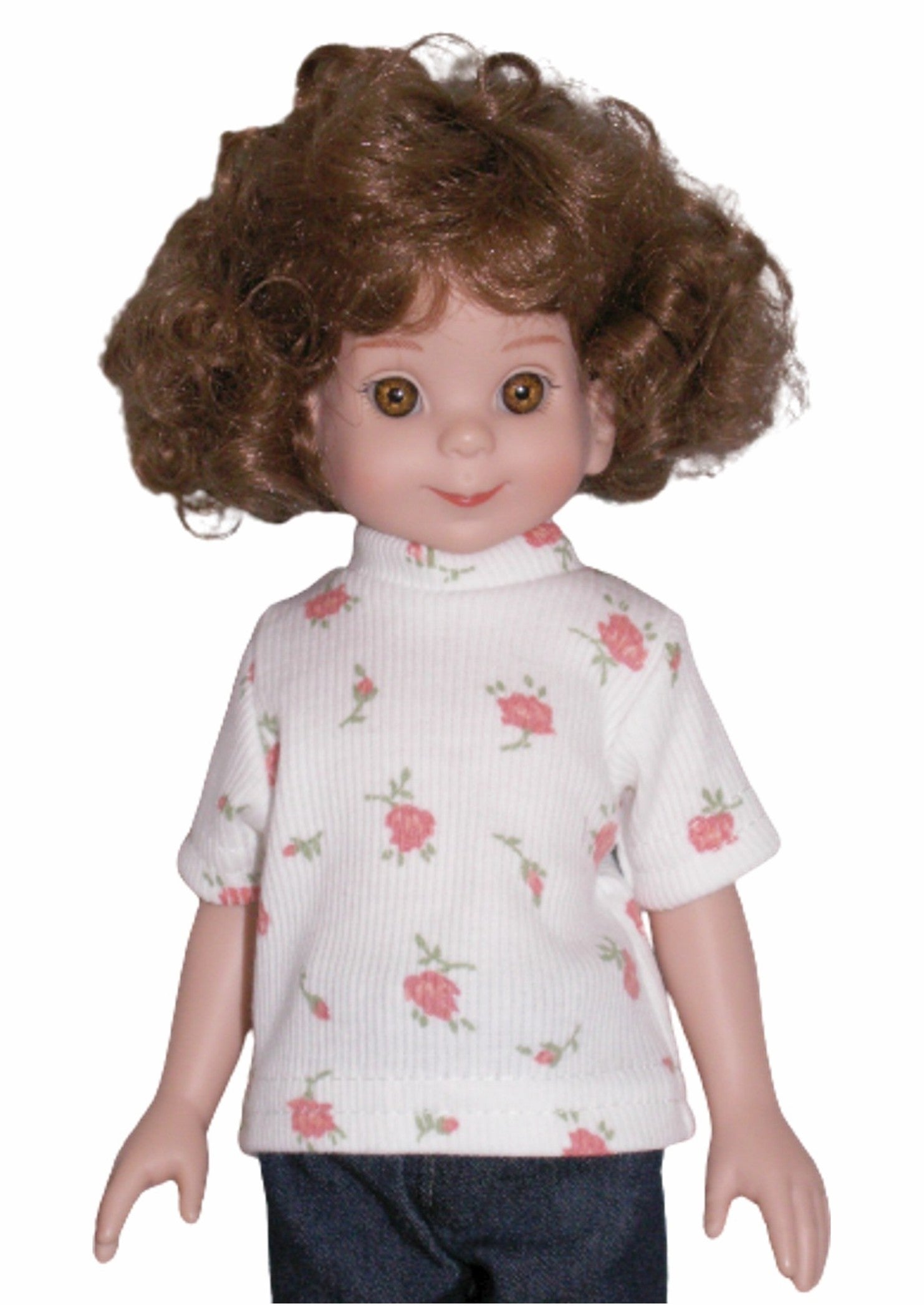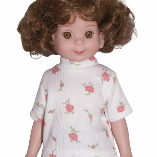 Dress your 14" Betsy McCall doll in style with this charming t-shirt! The back opens completely for hassle-free dressing, and a secure Velcro closure keeps everything in place. No more wrestling with tiny buttons or snaps—just smooth, quick changes so your doll is ready for playtime in seconds. Perfect for creating a versatile wardrobe that's as fun to dress as it is to wear!