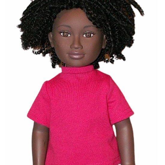 21" Karito Kids doll T-Shirt with back Velcro closure for effortless dressing. Choose between basic or fitted styles—the fitted option features elastic neckline and shorter cap sleeves for a tailored look. Back opening makes outfit changes quick and simple, perfect for active play and wardrobe swaps.