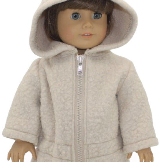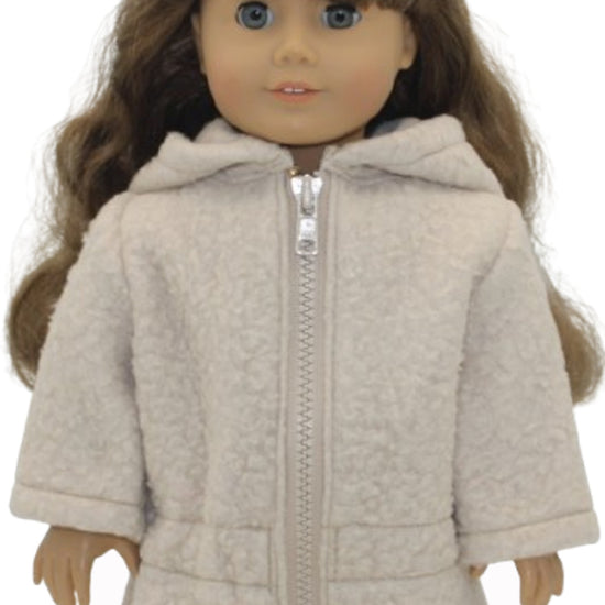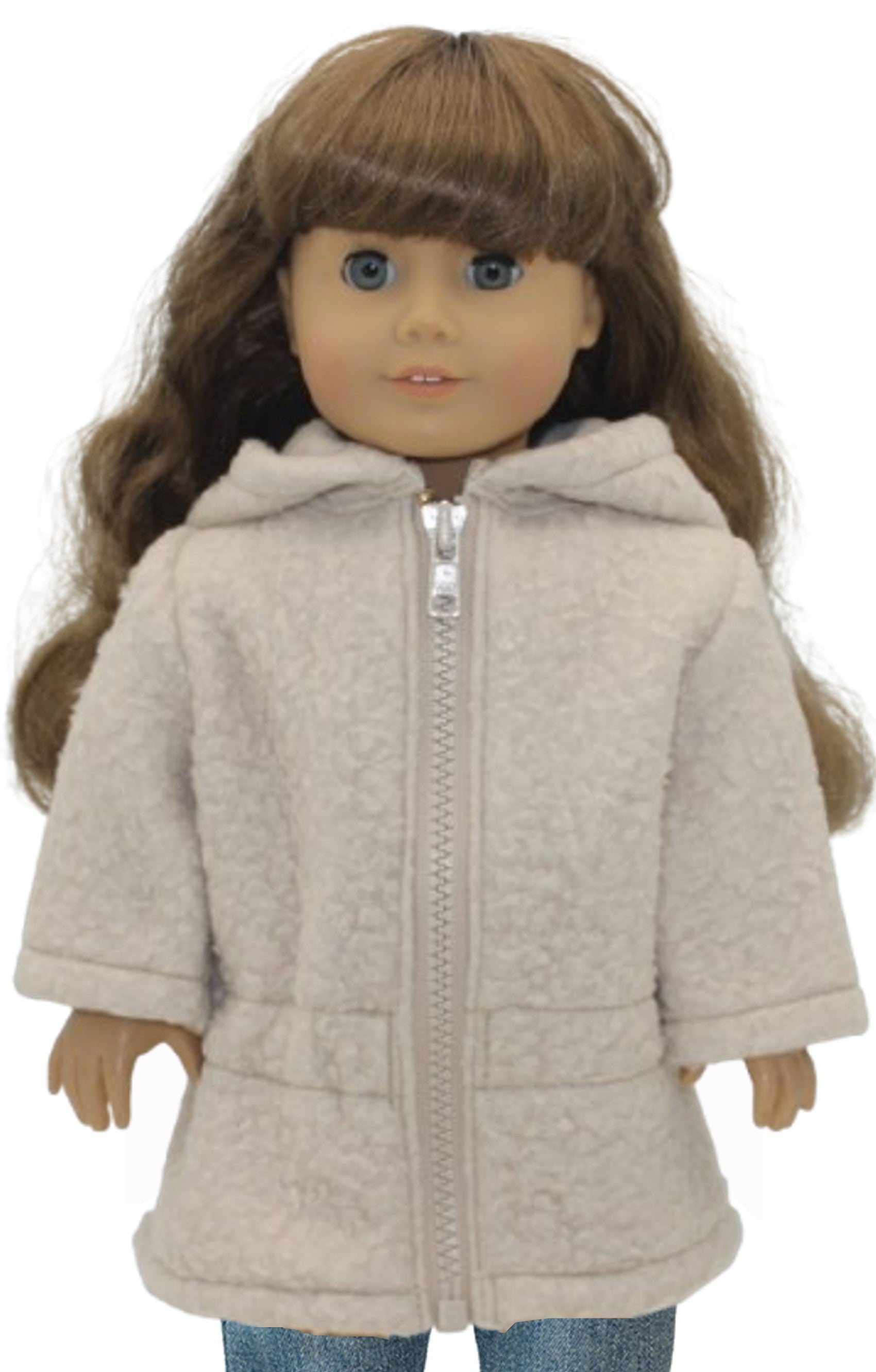 Wrap your doll in cozy comfort with this tan sherpa fleece anorak jacket! Featuring a dropped elastic waist, roomy hood, and a handy separating zipper, it’s perfect for chilly adventures. Plus, the matching mittens add an extra touch of warmth and cuteness.