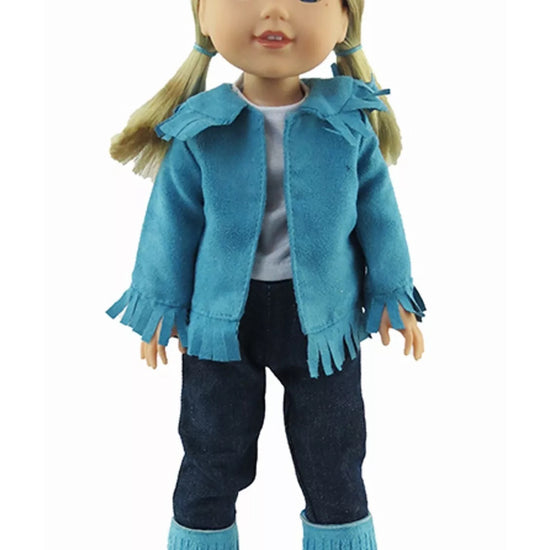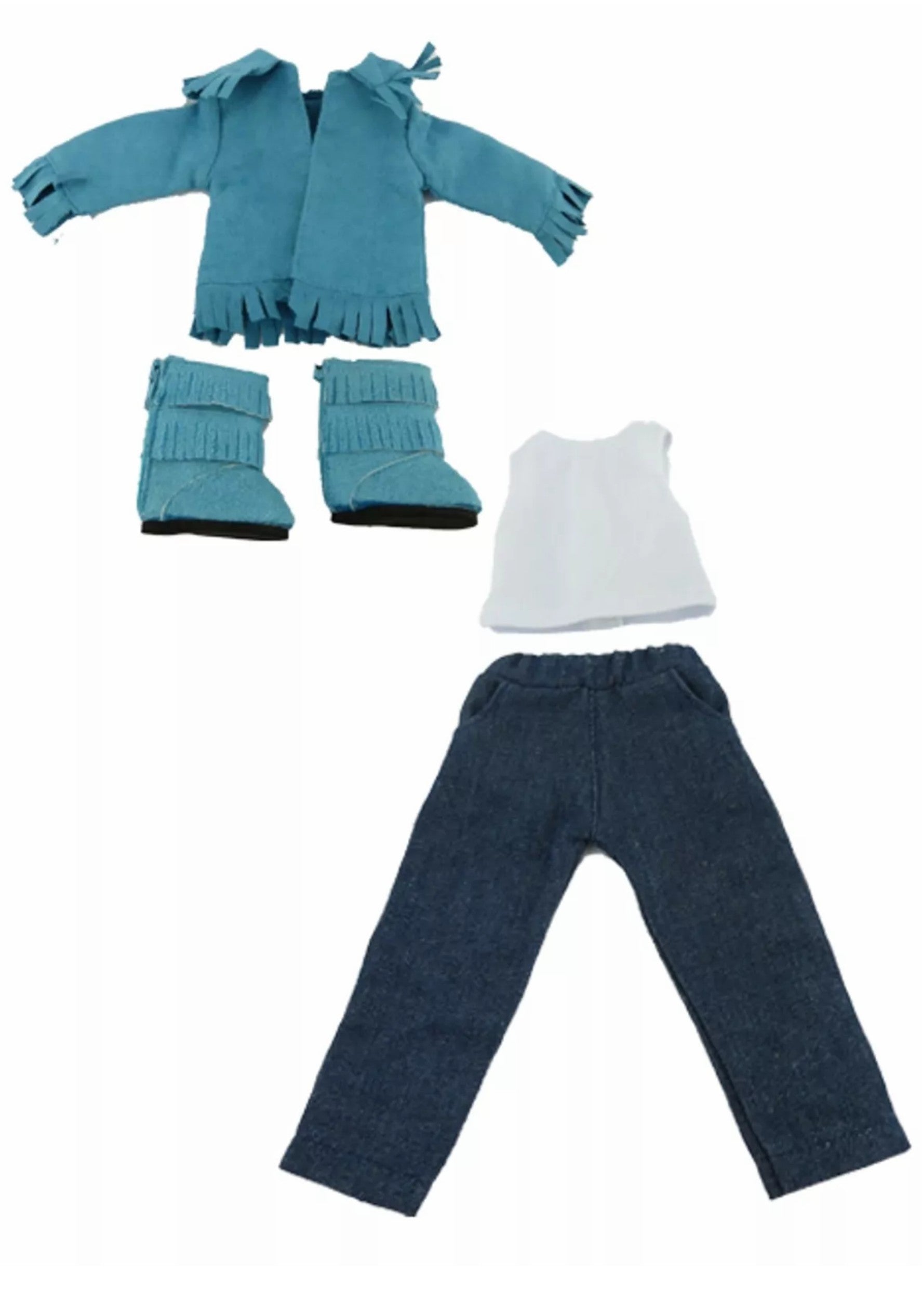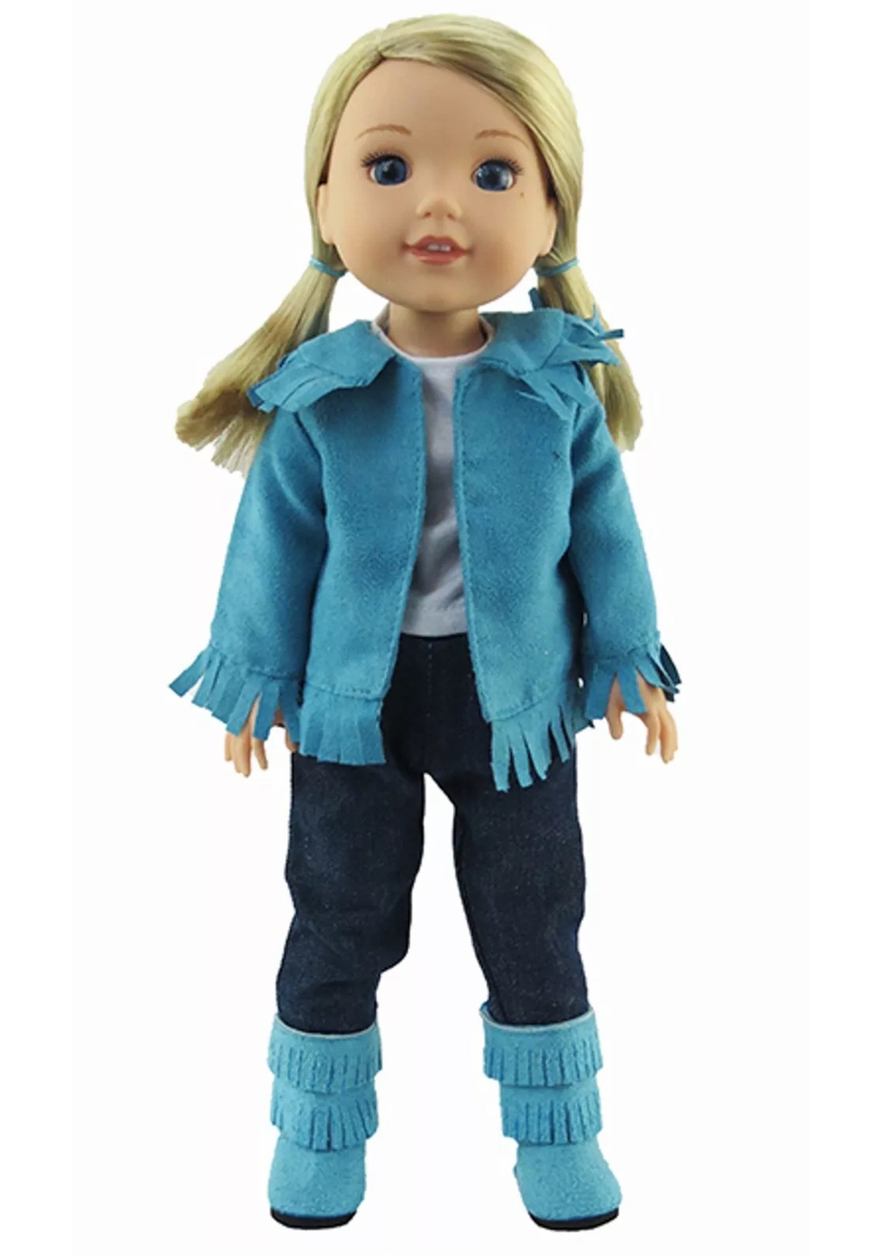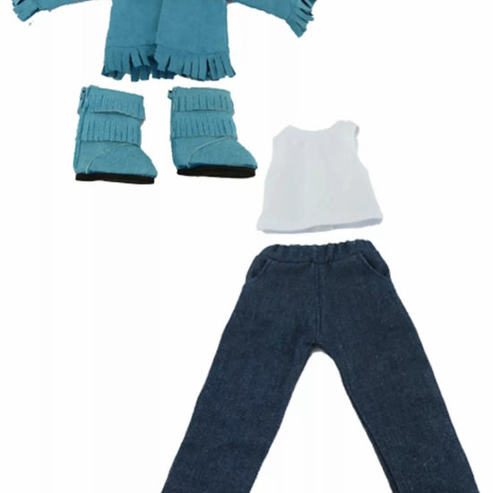 4 pc western outfit includes brown top, skirt, cowboy hat and faux suede boots.