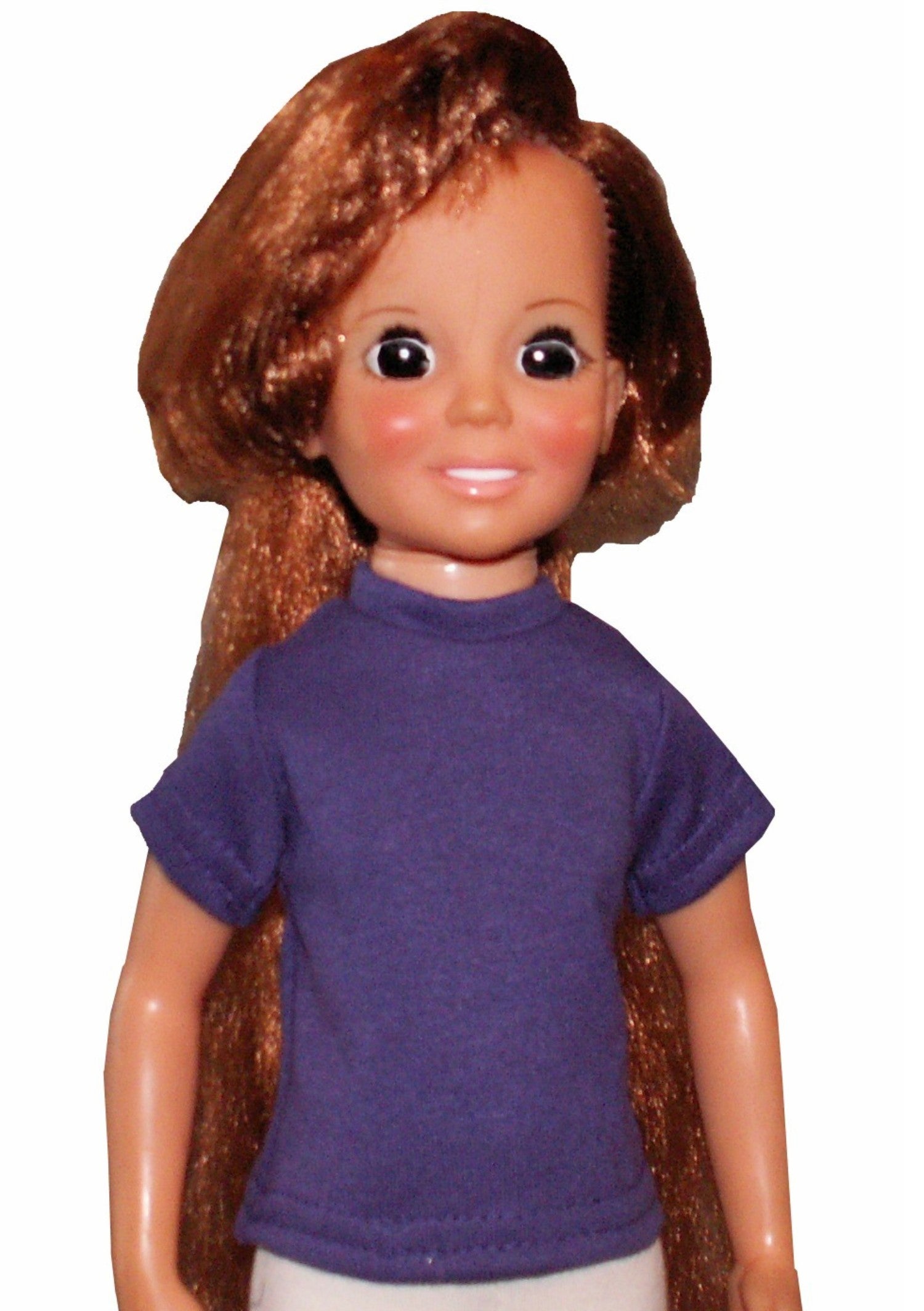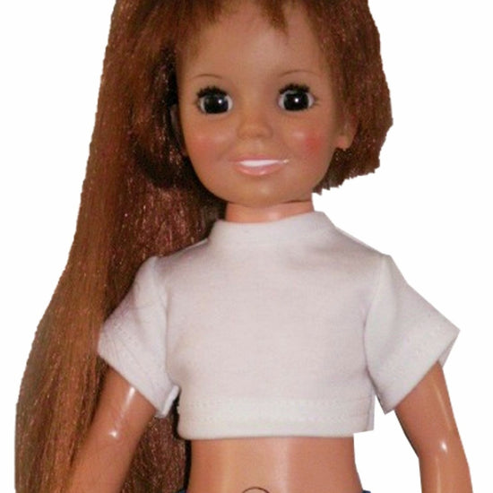 Dress your Crissy doll in casual style with this versatile tee shirt! Choose between a classic standard length or trendy crop cut to match her mood. The back Velcro closure makes dressing and undressing a breeze—no fussy snaps or buttons needed. Perfect for creating endless outfit combinations, this tee is an essential addition to any 18-inch doll's wardrobe.