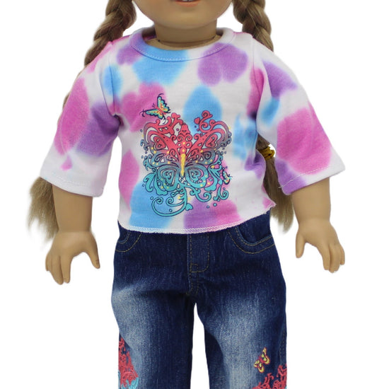 Add a splash of color to your doll’s wardrobe with this playful Tie Dye Tee & Jeans set! Featuring a vibrant tie-dye tee and matching denim jeans, it’s perfect for fun, casual adventures and brightening up any doll’s day.
