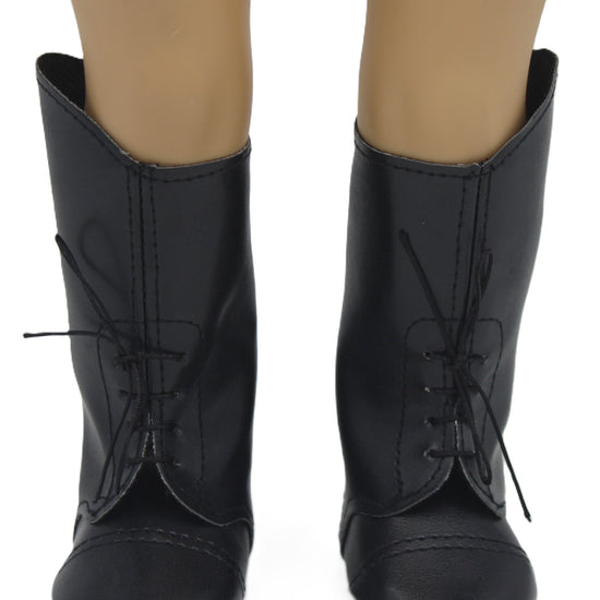 Step into timeless style with these tall black Victorian riding boots designed for your American Girl doll. Featuring easy-close zippers, they add a dash of historical charm and adventure-ready flair to any outfit. Perfect for imaginative play and dress-up fun!