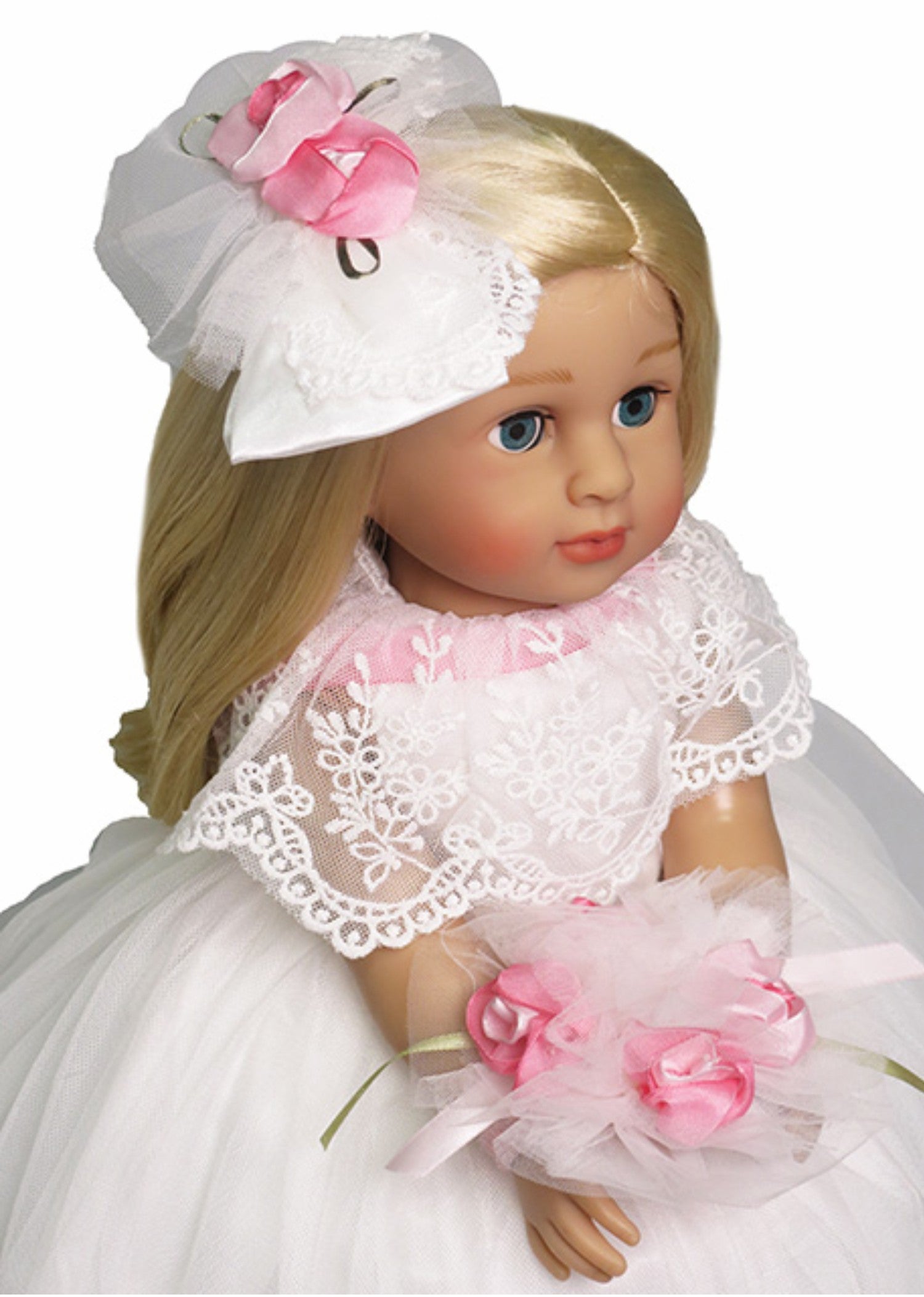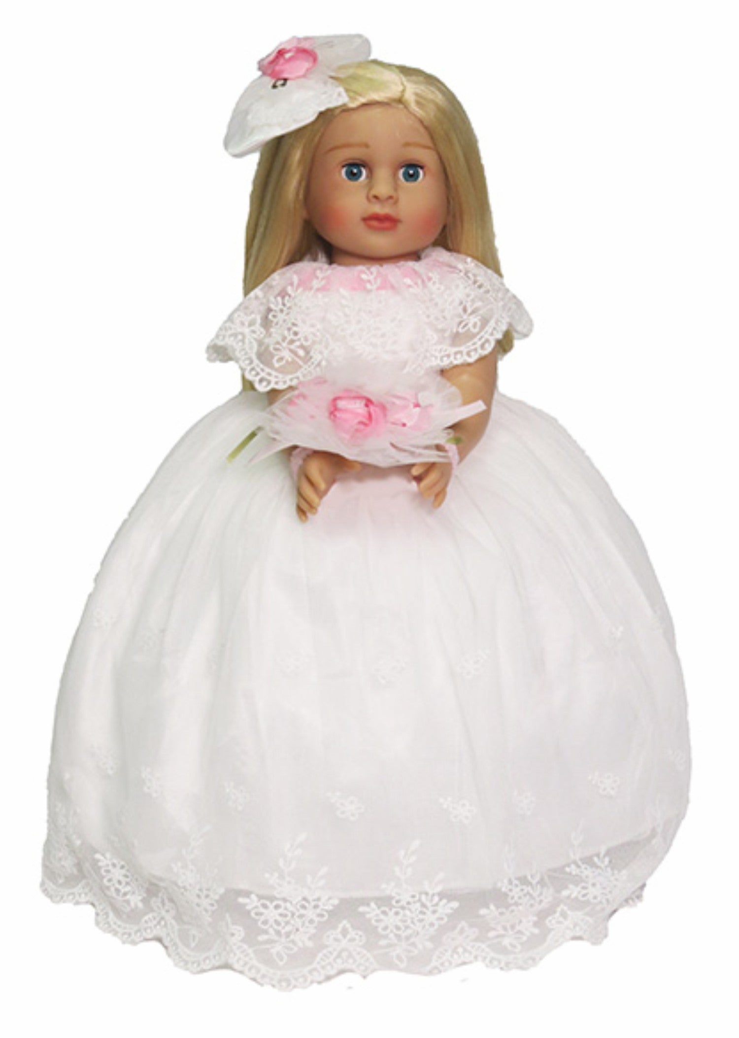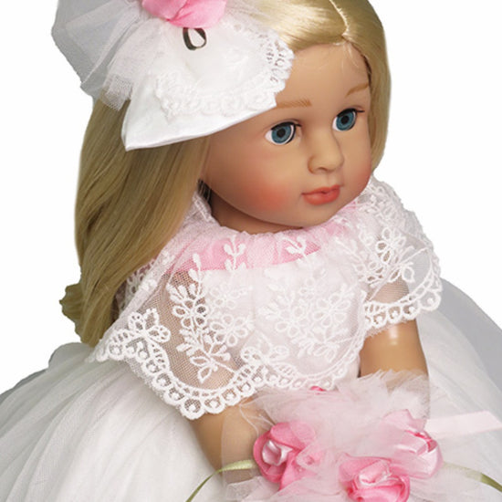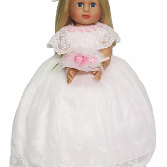 Say "I do" to this enchanting wedding dress ensemble for 18" American Girl dolls. This complete set includes an elegant white dress, a delicate bouquet of flowers, and a charming hair bow—everything needed for a picture-perfect ceremony. Let your doll celebrate her special day in style with this magical bridal collection.