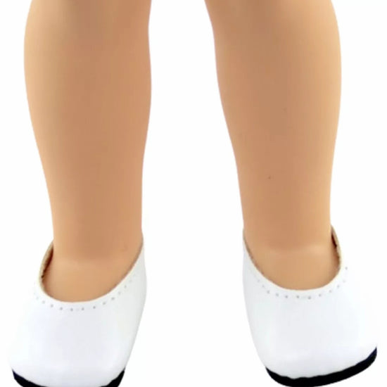 White slip on dress ballet flats fit 14" WellieWishers dolls.