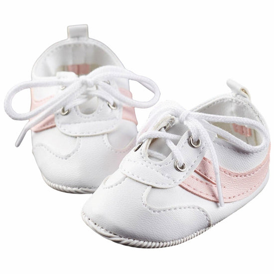 Give your My Twinn doll a sporty twist with these white faux leather sneakers, accented by a light pink stripe and functional laces. Stylish and fun, they bring energy to any outfit, making your doll ready for playtime, sports, or casual outings.