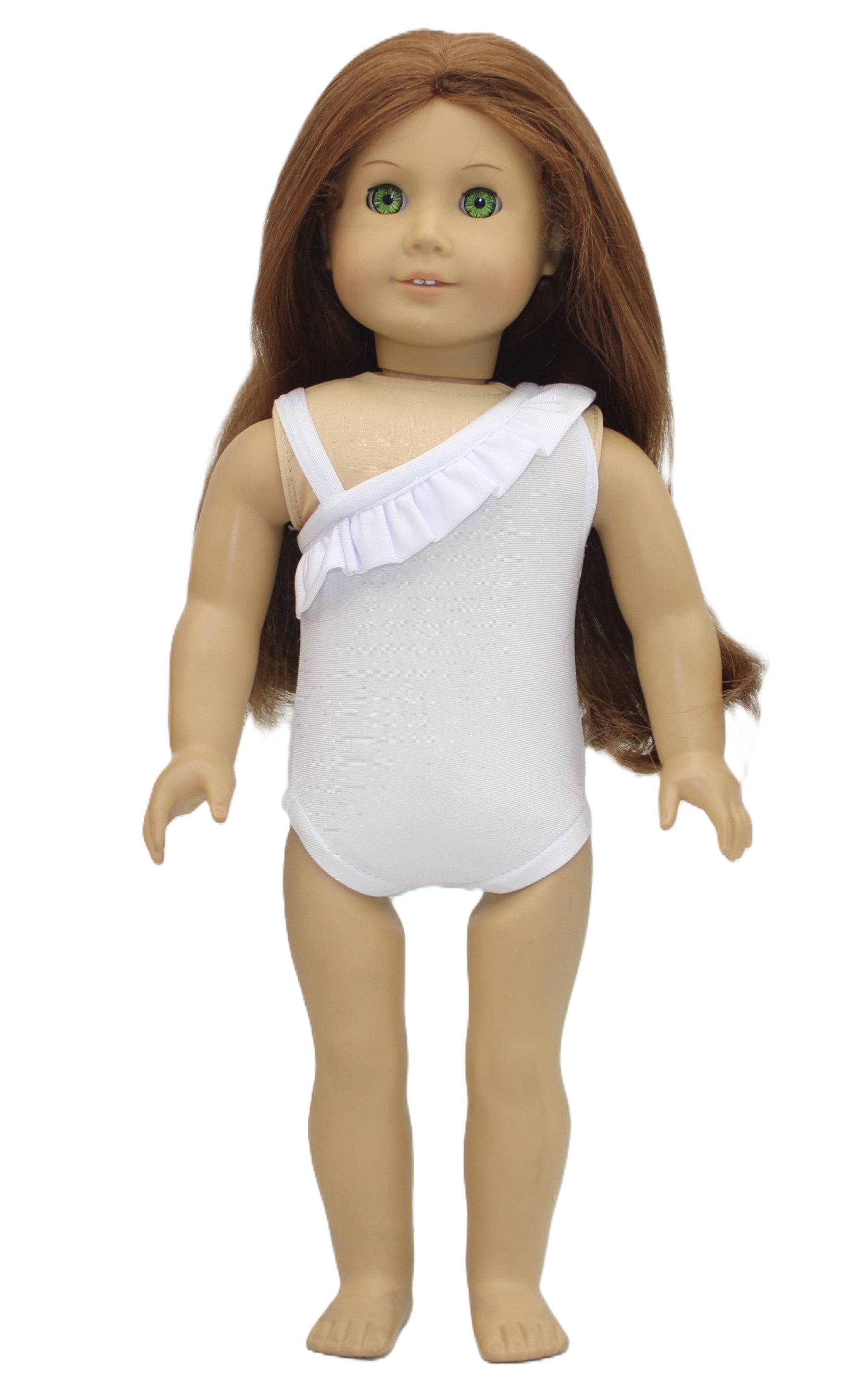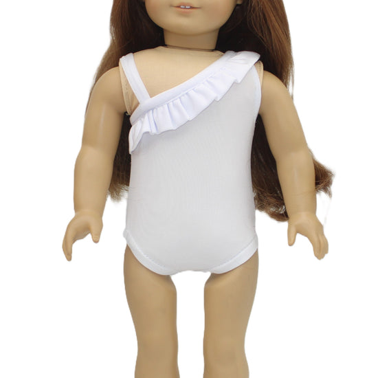 This white ruffled off-the-shoulder swimsuit adds a splash of fun and style to your doll’s beach day. Its playful ruffles bring a touch of charm, making your doll ready for sunny adventures and poolside fun. Perfect for warm-weather play!