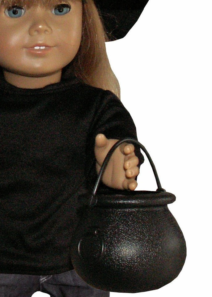 Plastic witch's brew kettle treat bucket for your doll's Halloween candy!