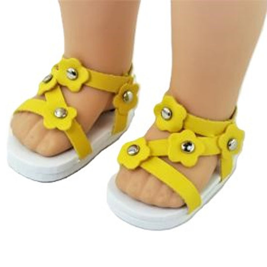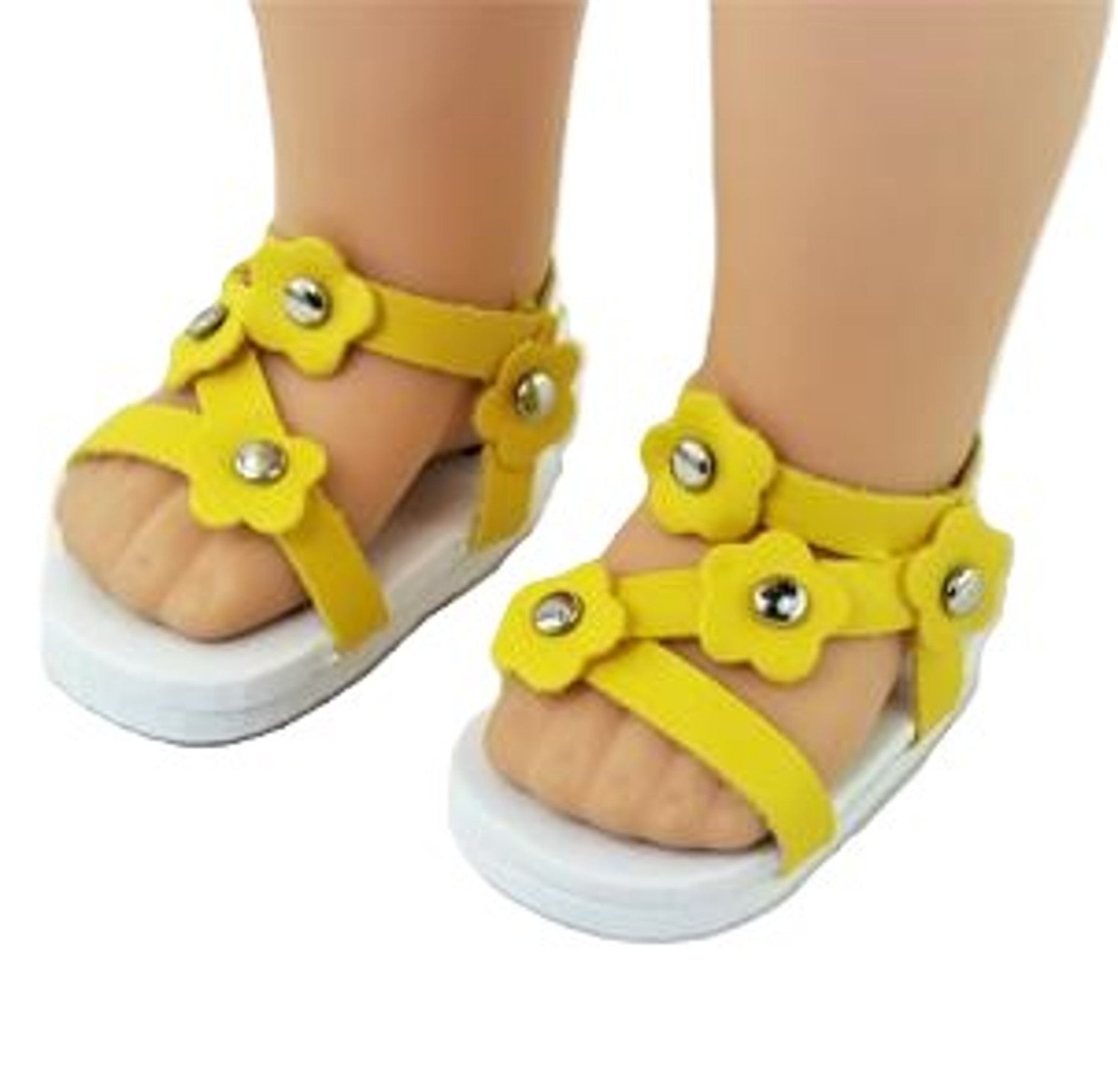 Brighten your 14" WellieWishers doll’s day with these sunny yellow flower sandals. Perfectly sized for a playful fit, they add a cheerful touch that’s ready for any warm-weather adventure or garden party.