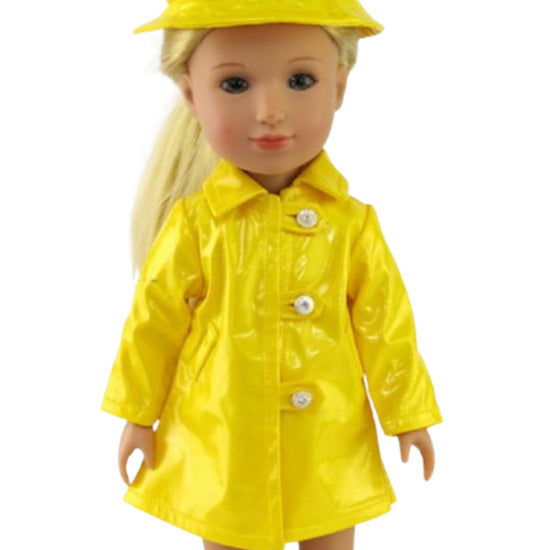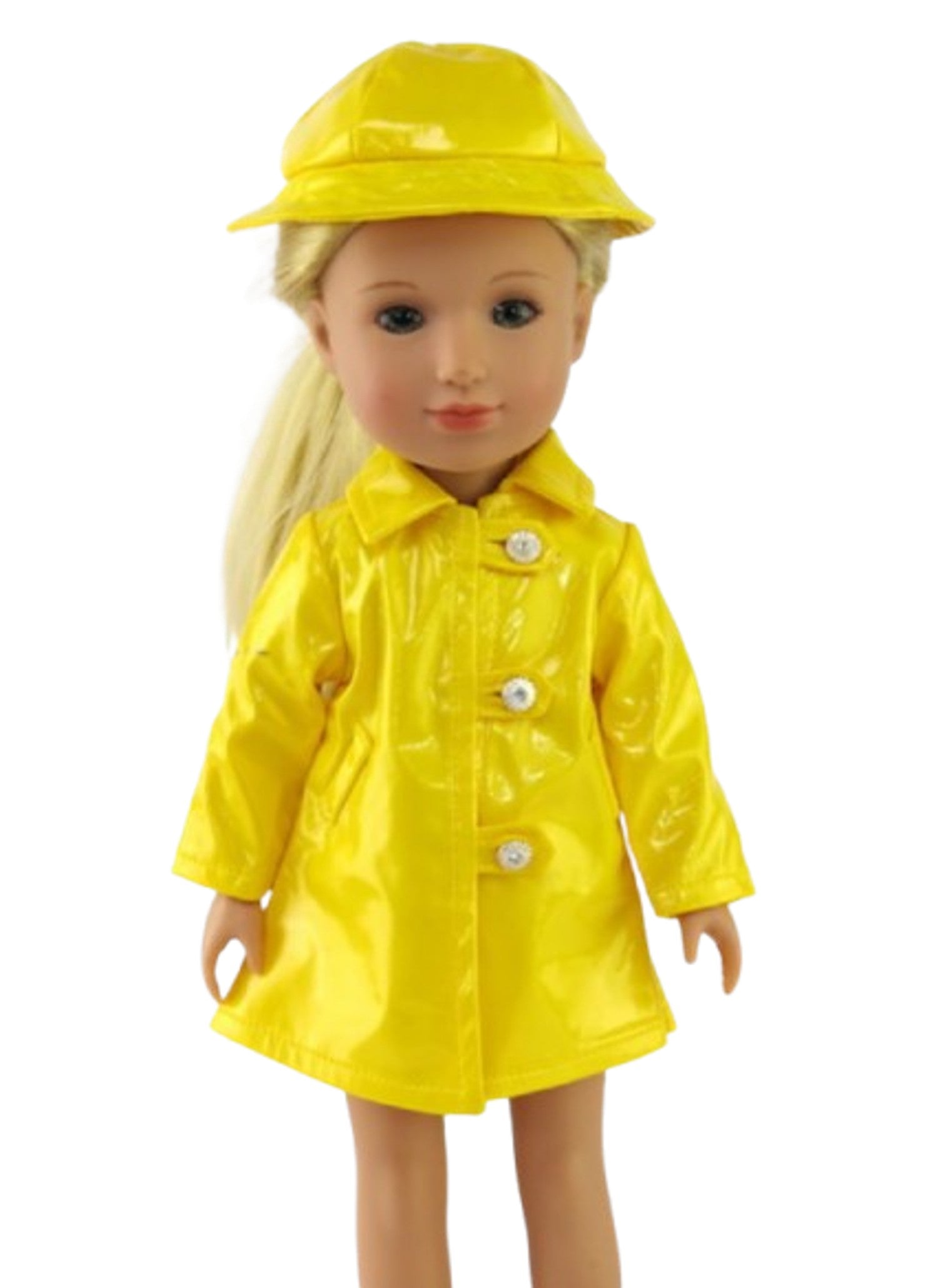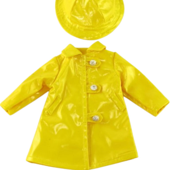 Brighten up rainy days with this classic yellow raincoat and matching hat, made to fit 14" WellieWishers dolls perfectly. Your doll will be ready to splash in puddles with style and stay dry on every adventurous, rainy outing!