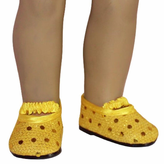 Add sparkle to your American Girl doll’s outfit with these playful yellow sequin slip-on flats. Easy to wear and sure to shine, they’re perfect for dressing up any doll look with a touch of glittery fun.